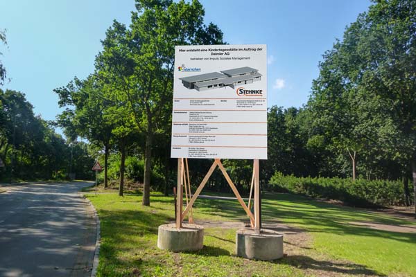 Vom kleinen Projektinformationsschild bis zum großflächigen Bauschild im XXL-Format – die Größe richtet sich nach dem Bauprojekt und Standort.