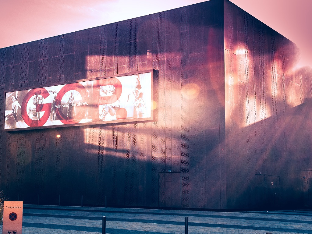 - Außenbeschilderung wie Fassadenschilder, Leitsysteme, Parkplatzbeschilderung